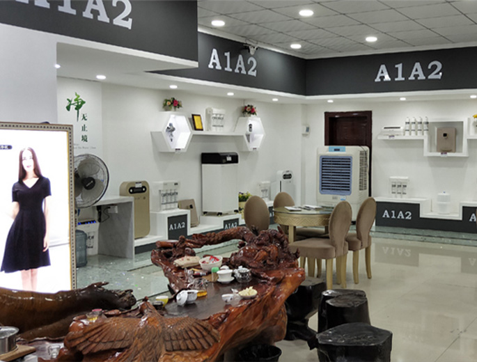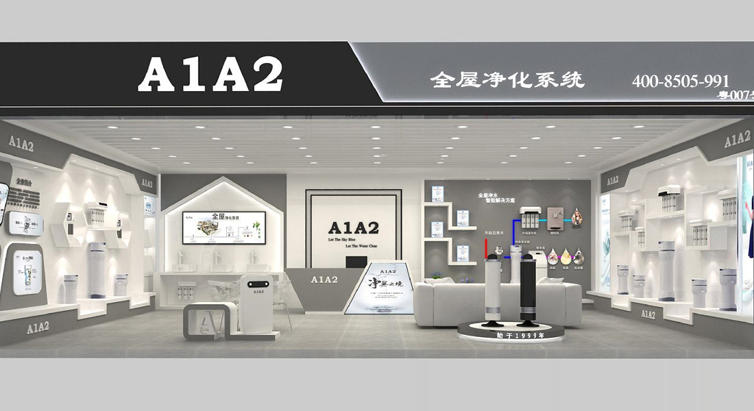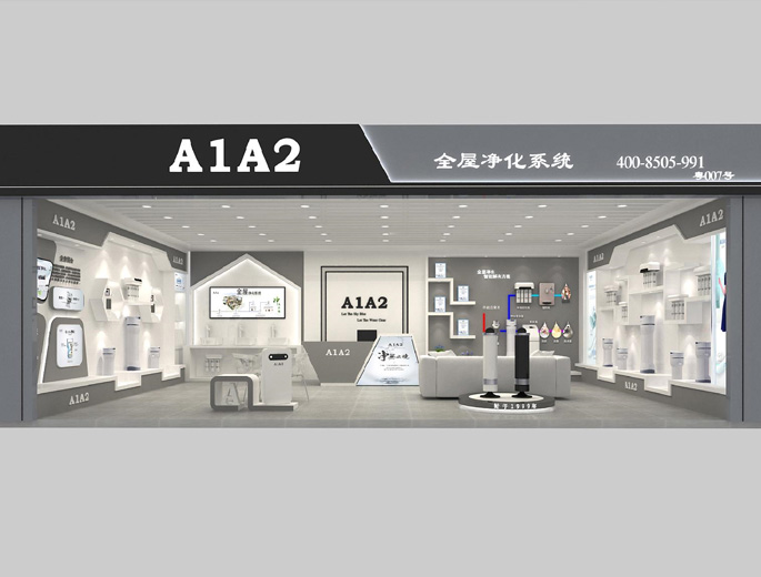 A1A2全屋净水品牌的VIS视觉形象,具有极高品牌联想力和识别度,从品牌形象VI、店面设计风格、店面产品陈列,A1A2统一规范终端门店整体形象,助力旗舰门店的持续盈利打好坚实的基础。